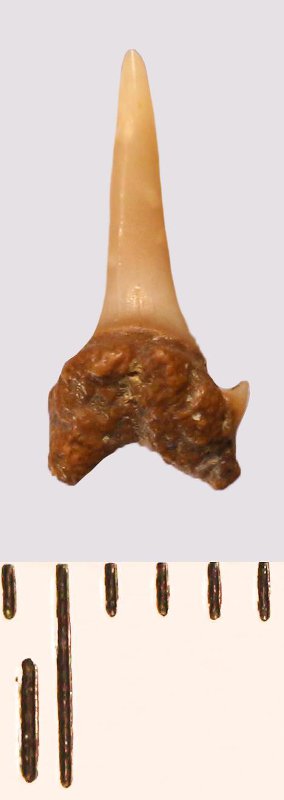 Зуб. Акула. Eostriatolamia sp. Классификация: Хордовые Chordata, Позвоночные Vertebrata, Хрящевые рыбы Chondrichthyes, Пластиножаберные Elasmobranchii