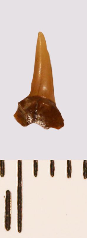 Зуб (фрагмент). Акула. Eostriatolamia sp. Классификация: Хордовые Chordata, Позвоночные Vertebrata, Хрящевые рыбы Chondrichthyes, Пластиножаберные Elasmobranchii