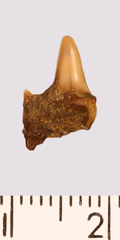 Зуб. Акула. Odontaspis macrorhiza (Cope) Leriche, 1902. Классификация: Хордовые Chordata, Позвоночные Vertebrata, Хрящевые рыбы Chondrichthyes, Пластиножаберные Elasmobranchii