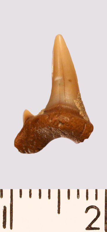 Зуб. Акула. Odontaspis macrorhiza (Cope) Leriche, 1902. Классификация: Хордовые Chordata, Позвоночные Vertebrata, Хрящевые рыбы Chondrichthyes, Пластиножаберные Elasmobranchii