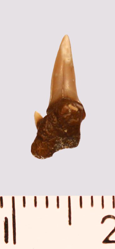 Зуб. Акула. Odontaspis macrorhiza (Cope) Leriche, 1902. Классификация: Хордовые Chordata, Позвоночные Vertebrata, Хрящевые рыбы Chondrichthyes, Пластиножаберные Elasmobranchii