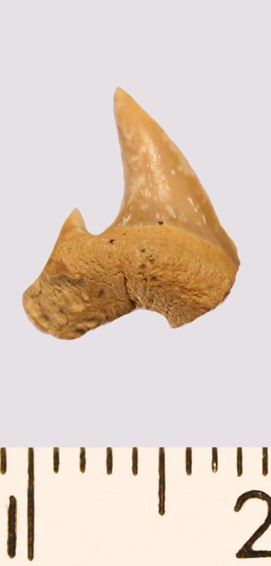 Зуб. Акула. Odontaspis macrorhiza (Cope) Leriche, 1902. Классификация: Хордовые Chordata, Позвоночные Vertebrata, Хрящевые рыбы Chondrichthyes, Пластиножаберные Elasmobranchii