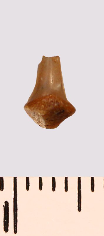 Зуб (фрагмент). Акула. Odontaspis macrorhiza (Cope) Leriche, 1902. Классификация: Хордовые Chordata, Позвоночные Vertebrata, Хрящевые рыбы Chondrichthyes, Пластиножаберные Elasmobranchii