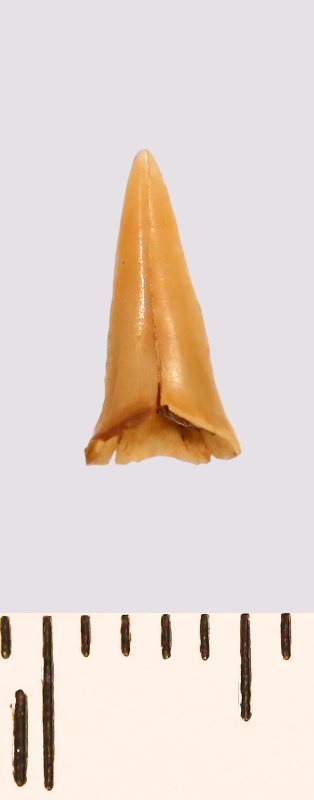 Зуб (фрагмент). Акула. Lamniformes gen. et sp. indet. Классификация: Хордовые Chordata, Позвоночные Vertebrata, Хрящевые рыбы Chondrichthyes, Пластиножаберные Elasmobranchii