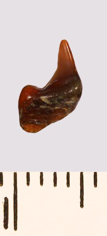 Зуб (фрагмент). Акула. Odontaspis macrorhiza (Cope) Leriche, 1902. Классификация: Хордовые Chordata, Позвоночные Vertebrata, Хрящевые рыбы Chondrichthyes, Пластиножаберные Elasmobranchii
