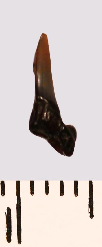 Зуб (фрагмент). Акула. Protolamna sp. Классификация: Хордовые Chordata, Позвоночные Vertebrata, Хрящевые рыбы Chondrichthyes, Пластиножаберные Elasmobranchii