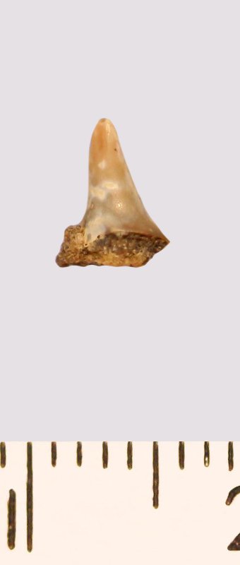 Зуб (фрагмент). Акула. Lamniformes gen. et sp. indet. Классификация: Хордовые Chordata, Позвоночные Vertebrata, Хрящевые рыбы Chondrichthyes, Пластиножаберные Elasmobranchii