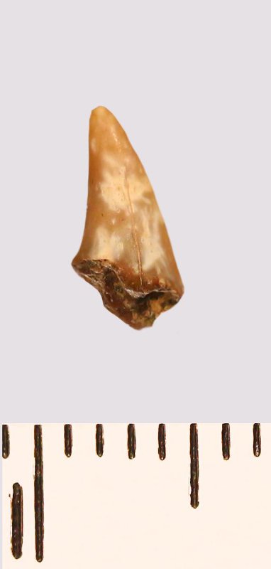 Зуб (фрагмент). Акула. Lamniformes gen. et sp. indet. Классификация: Хордовые Chordata, Позвоночные Vertebrata, Хрящевые рыбы Chondrichthyes, Пластиножаберные Elasmobranchii