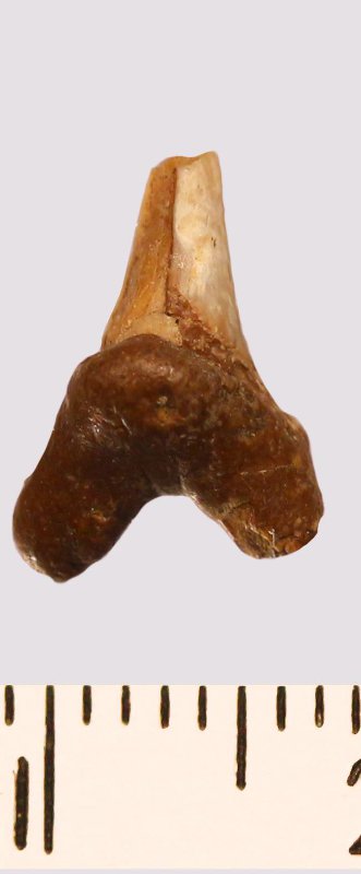Зуб. Акула. Odontaspis macrorhiza (Cope) Leriche, 1902. Классификация: Хордовые Chordata, Позвоночные Vertebrata, Хрящевые рыбы Chondrichthyes, Пластиножаберные Elasmobranchii