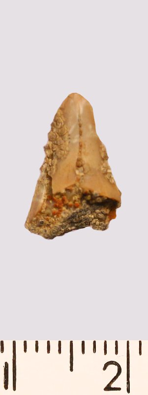 Зуб (фрагмент). Акула. Cretoxyrhina sp. Классификация: Хордовые Chordata, Позвоночные Vertebrata, Хрящевые рыбы Chondrichthyes, Пластиножаберные Elasmobranchii