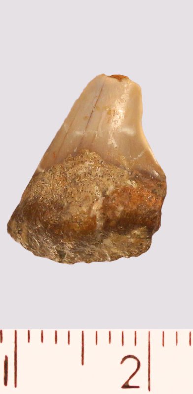 Зуб (фрагмент). Акула. Cretoxyrhina sp. Классификация: Хордовые Chordata, Позвоночные Vertebrata, Хрящевые рыбы Chondrichthyes, Пластиножаберные Elasmobranchii