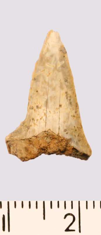 Зуб (фрагмент). Акула. Cretoxyrhina sp. Классификация: Хордовые Chordata, Позвоночные Vertebrata, Хрящевые рыбы Chondrichthyes, Пластиножаберные Elasmobranchii