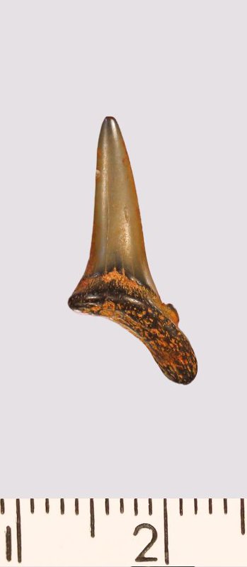 Зуб. Акула. Hispidaspis gigas Woodward, 1889. Классификация: Хордовые Chordata, Позвоночные Vertebrata, Хрящевые рыбы Chondrichthyes, Пластиножаберные Elasmobranchii