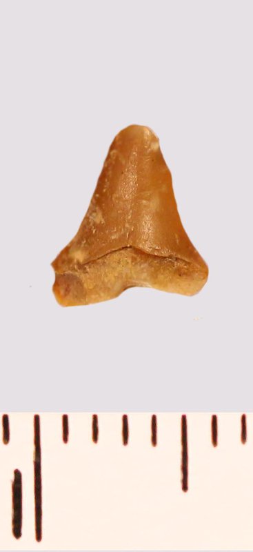 Зуб (фрагмент). Акула. Lamniformes gen. et sp. indet. Классификация: Хордовые Chordata, Позвоночные Vertebrata, Хрящевые рыбы Chondrichthyes, Пластиножаберные Elasmobranchii