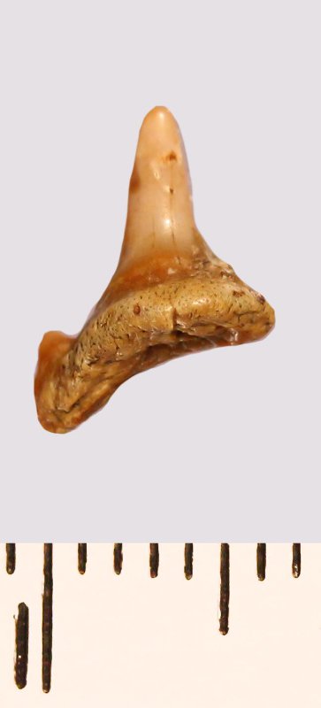 Зуб. Акула. Odontaspis striatula Dalinkevicius, 1935. Классификация: Хордовые Chordata, Позвоночные Vertebrata, Хрящевые рыбы Chondrichthyes, Пластиножаберные Elasmobranchii