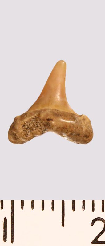 Зуб. Акула. Odontaspis striatula Dalinkevicius, 1935. Классификация: Хордовые Chordata, Позвоночные Vertebrata, Хрящевые рыбы Chondrichthyes, Пластиножаберные Elasmobranchii