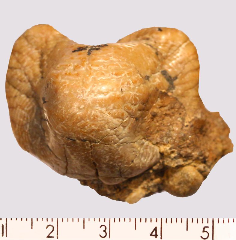 Зуб (фрагмент). Акула. Ptychodus rugosus Dixon, 1850. Классификация: Хордовые Chordata, Позвоночные Vertebrata, Хрящевые рыбы Chondrichthyes, Пластиножаберные Elasmobranchii