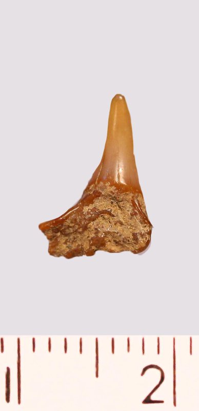 Зуб (фрагмент). Акула. Synechodus sp. Классификация: Хордовые Chordata, Позвоночные Vertebrata, Хрящевые рыбы Chondrichthyes, Пластиножаберные Elasmobranchii