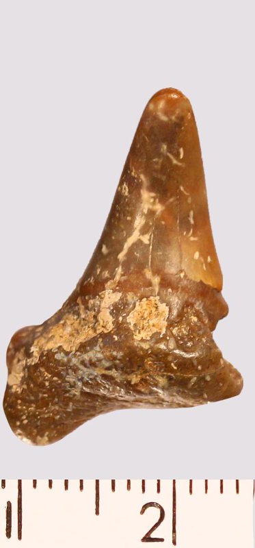 Зуб. Акула. Otodus aff. semiplicatus Agassiz, 1843. Классификация: Хордовые Chordata, Позвоночные Vertebrata, Хрящевые рыбы Chondrichthyes, Пластиножаберные Elasmobranchii