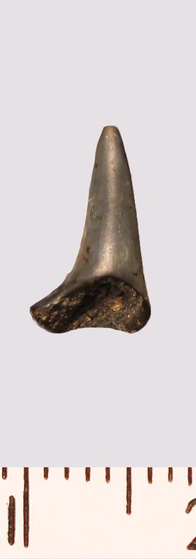 Зуб (фрагмент). Акула. Lamniformes gen. et sp. indet. Классификация: Хордовые Chordata, Позвоночные Vertebrata, Хрящевые рыбы Chondrichthyes, Пластиножаберные Elasmobranchii