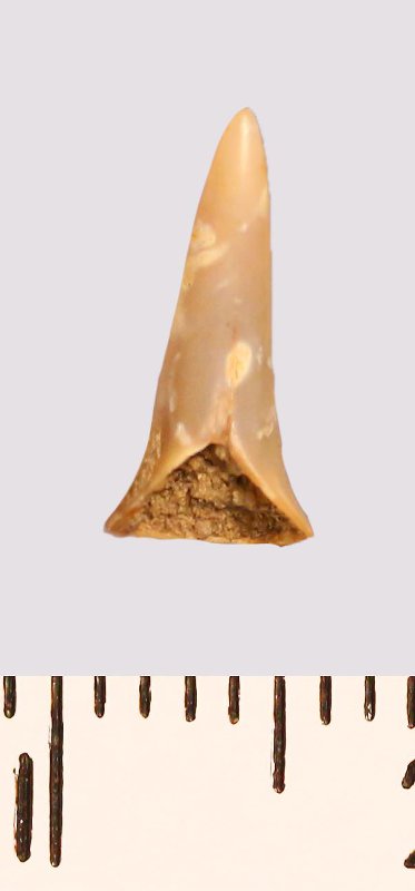 Зуб (фрагмент). Акула. Lamniformes gen. et sp. indet. Классификация: Хордовые Chordata, Позвоночные Vertebrata, Хрящевые рыбы Chondrichthyes, Пластиножаберные Elasmobranchii