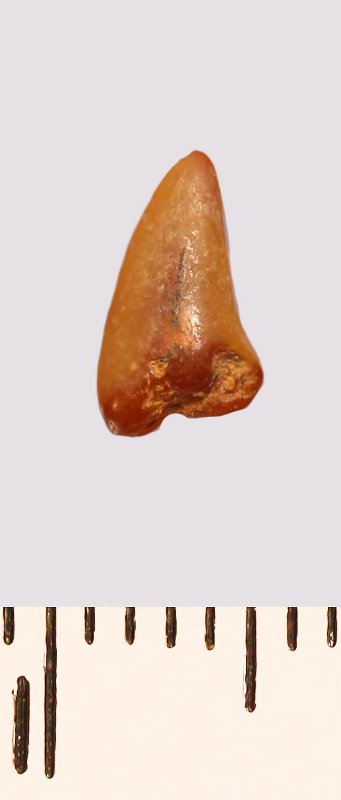 Зуб (фрагмент). Акула. Lamniformes gen. et sp. indet. Классификация: Хордовые Chordata, Позвоночные Vertebrata, Хрящевые рыбы Chondrichthyes, Пластиножаберные Elasmobranchii