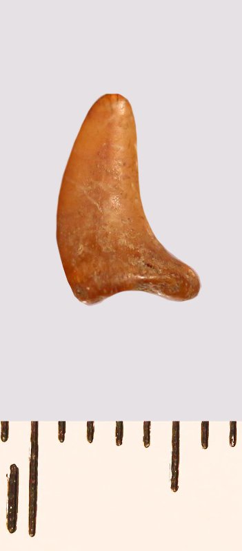 Зуб (фрагмент). Акула. Lamniformes gen. et sp. indet. Классификация: Хордовые Chordata, Позвоночные Vertebrata, Хрящевые рыбы Chondrichthyes, Пластиножаберные Elasmobranchii