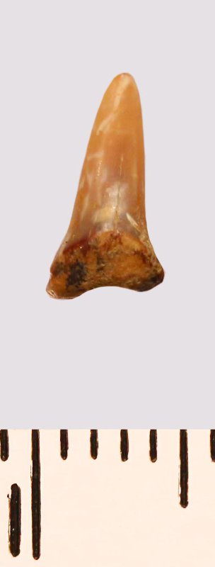 Зуб (фрагмент). Акула. Odontaspis striatula Dalinkevicius, 1935. Классификация: Хордовые Chordata, Позвоночные Vertebrata, Хрящевые рыбы Chondrichthyes, Пластиножаберные Elasmobranchii