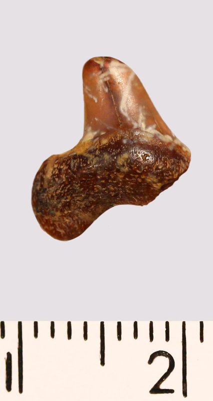 Зуб. Акула. Odontaspis macrorhiza (Cope) Leriche, 1902. Классификация: Хордовые Chordata, Позвоночные Vertebrata, Хрящевые рыбы Chondrichthyes, Пластиножаберные Elasmobranchii