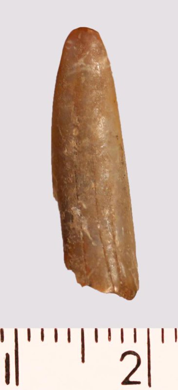 Зуб (фрагмент). Акула. Scapanorhynchus gigas Woodward 1889. Классификация: Хордовые Chordata, Позвоночные Vertebrata, Хрящевые рыбы Chondrichthyes, Пластиножаберные Elasmobranchii