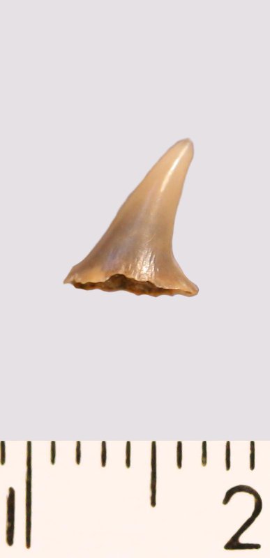 Зуб (фрагмент). Акула. Lamniformes gen. et sp. indet. Классификация: Хордовые Chordata, Позвоночные Vertebrata, Хрящевые рыбы Chondrichthyes, Пластиножаберные Elasmobranchii