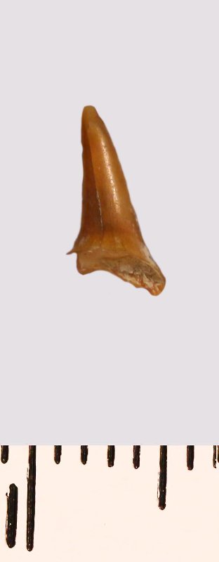 Зуб (фрагмент). Акула. Lamniformes gen. et sp. indet. Классификация: Хордовые Chordata, Позвоночные Vertebrata, Хрящевые рыбы Chondrichthyes, Пластиножаберные Elasmobranchii