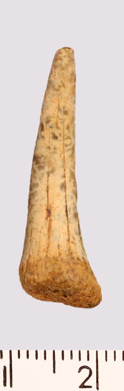 Зуб (фрагмент). Акула. Scapanorhynchus gigas Woodward 1889. Классификация: Хордовые Chordata, Позвоночные Vertebrata, Хрящевые рыбы Chondrichthyes, Пластиножаберные Elasmobranchii
