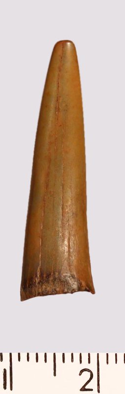 Зуб (фрагмент). Акула. Scapanorhynchus gigas Woodward 1889. Классификация: Хордовые Chordata, Позвоночные Vertebrata, Хрящевые рыбы Chondrichthyes, Пластиножаберные Elasmobranchii