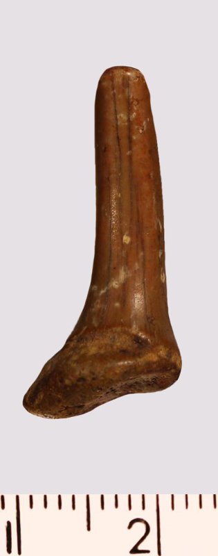 Зуб (фрагмент). Акула. Scapanorhynchus gigas Woodward 1889. Классификация: Хордовые Chordata, Позвоночные Vertebrata, Хрящевые рыбы Chondrichthyes, Пластиножаберные Elasmobranchii