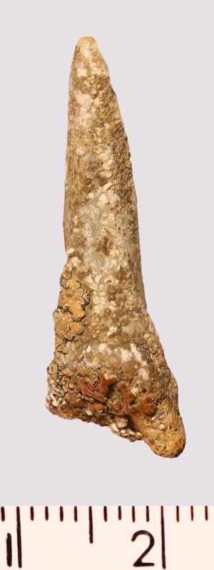 Зуб. Акула. Scapanorhynchus gigas Woodward 1889. Классификация: Хордовые Chordata, Позвоночные Vertebrata, Хрящевые рыбы Chondrichthyes, Пластиножаберные Elasmobranchii
