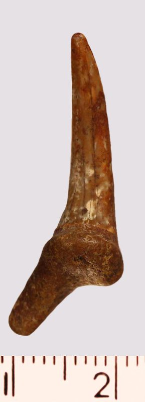 Зуб. Акула. Scapanorhynchus gigas Woodward 1889. Классификация: Хордовые Chordata, Позвоночные Vertebrata, Хрящевые рыбы Chondrichthyes, Пластиножаберные Elasmobranchii