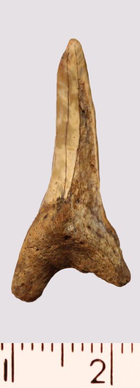 Зуб. Акула. Scapanorhynchus gigas Woodward 1889. Классификация: Хордовые Chordata, Позвоночные Vertebrata, Хрящевые рыбы Chondrichthyes, Пластиножаберные Elasmobranchii