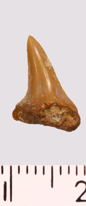 Зуб (фрагмент). Акула. Odontaspis macrorhiza (Cope) Leriche, 1902. Классификация: Хордовые Chordata, Позвоночные Vertebrata, Хрящевые рыбы Chondrichthyes, Пластиножаберные Elasmobranchii