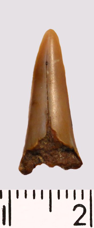 Зуб (фрагмент). Акула. Lamniformes gen. et sp. indet. Классификация: Хордовые Chordata, Позвоночные Vertebrata, Хрящевые рыбы Chondrichthyes, Пластиножаберные Elasmobranchii