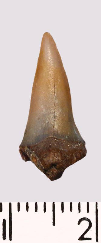 Зуб (фрагмент). Акула. Lamniformes gen. et sp. indet. Классификация: Хордовые Chordata, Позвоночные Vertebrata, Хрящевые рыбы Chondrichthyes, Пластиножаберные Elasmobranchii