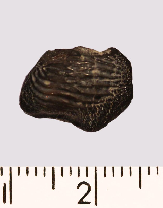 Зуб. Акула. Ptychodus decurrens Agassiz, 1839. Классификация: Хордовые Chordata, Позвоночные Vertebrata, Хрящевые рыбы Chondrichthyes, Пластиножаберные Elasmobranchii