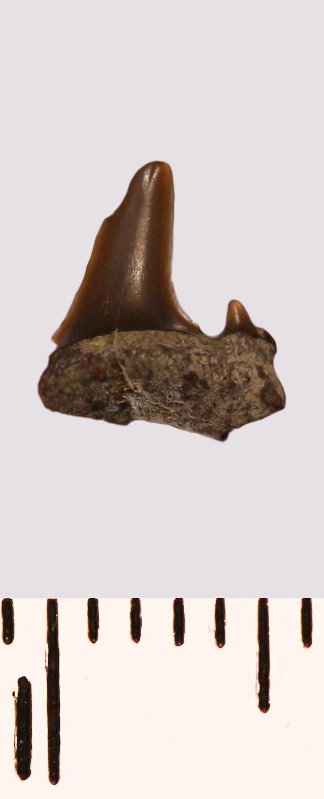 Зуб. Акула. Lamniformes gen. et sp. indet. Классификация: Хордовые Chordata, Позвоночные Vertebrata, Хрящевые рыбы Chondrichthyes, Пластиножаберные Elasmobranchii