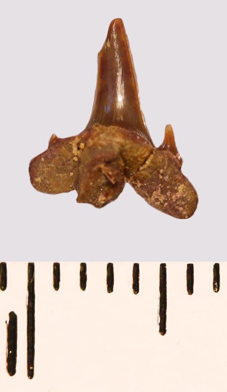 Зуб. Акула. Odontaspis aff. subulata (Agassiz, 1843). Классификация: Хордовые Chordata, Позвоночные Vertebrata, Хрящевые рыбы Chondrichthyes, Пластиножаберные Elasmobranchii