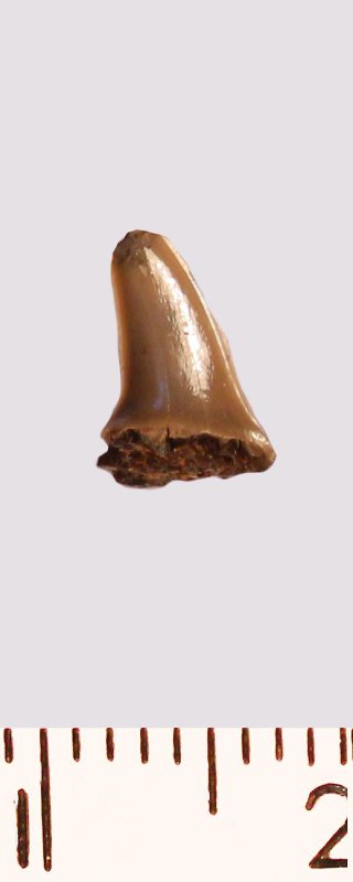 Зуб (фрагмент). Акула. Scapanorhynchus gigas Woodward 1889. Классификация: Хордовые Chordata, Позвоночные Vertebrata, Хрящевые рыбы Chondrichthyes, Пластиножаберные Elasmobranchii
