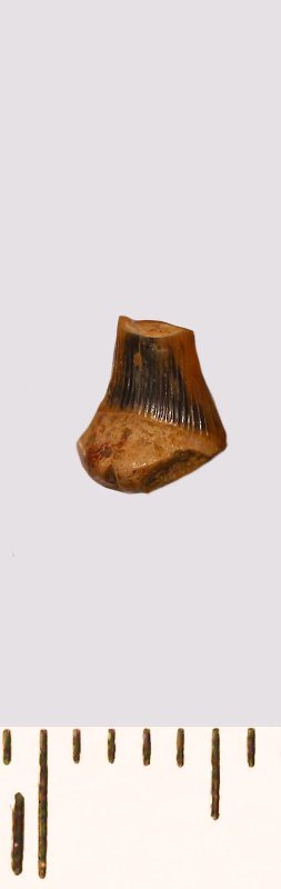 Зуб (фрагмент). Акула. Scapanorhynchus raphiodon (Agassiz, 1843). Классификация: Хордовые Chordata, Позвоночные Vertebrata, Хрящевые рыбы Chondrichthyes, Пластиножаберные Elasmobranchii