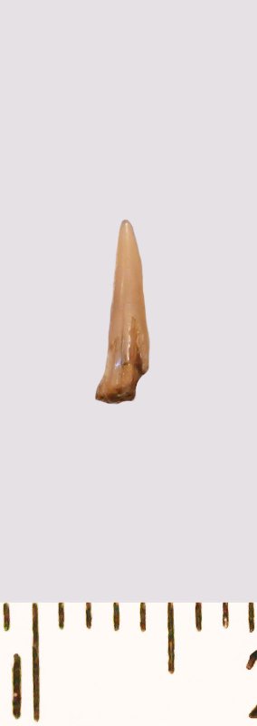 Зуб (фрагмент). Акула. Odontaspis striatula Dalinkevicius, 1935. Классификация: Хордовые Chordata, Позвоночные Vertebrata, Хрящевые рыбы Chondrichthyes, Пластиножаберные Elasmobranchii