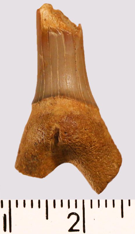 Зуб. Акула. Hispidaspis sp. Классификация: Хордовые Chordata, Позвоночные Vertebrata, Хрящевые рыбы Chondrichthyes, Пластиножаберные Elasmobranchii