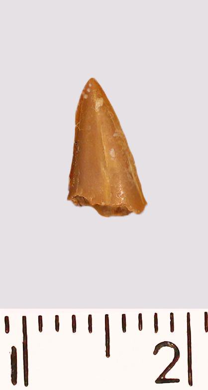 Зуб (фрагмент). Акула. Cretolamna appendiculata (Agassiz, 1843). Классификация: Хордовые Chordata, Позвоночные Vertebrata, Хрящевые рыбы Chondrichthyes, Пластиножаберные Elasmobranchii