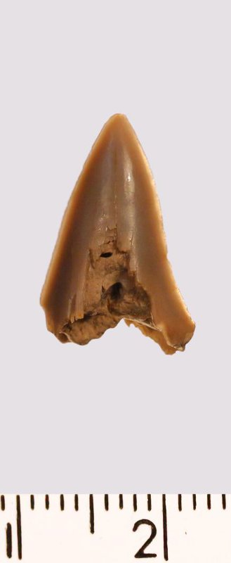 Зуб (фрагмент). Акула. Cretoxyrhina sp. Классификация: Хордовые Chordata, Позвоночные Vertebrata, Хрящевые рыбы Chondrichthyes, Пластиножаберные Elasmobranchii